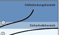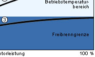 Der Wärmewert ist deshalb so wichtig, da einerseits eine bestimmte Mindesttemperatur (Freibrenngrenze) erreicht werden muss, um ein "Verrußen" und damit Zündungsaussetzer zu vermeiden, andererseits jedoch eine bestimmte Höchsttemperatur (Glühzündungsbereich) nicht überschritten werden darf, um Glühzündungen auszuschließen. Aus diesen Gründen ist die sich abhängig von der abgegebenen Motorleistung einstellende Arbeitstemperatur (Betriebstemperaturbereich) der Zündkerze konstruktiv in den oben abgebildeten Grenzen zu halten. |