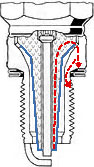 Der Wärmewert beschreibt die Fähigkeit einer Zündkerze, Wärme aufzunehmen und wieder abzuführen. Die Wärmezufuhr an der Zündkerze im Brennraum ist dabei vom jeweiligen spezifischen Motortyp abhängig. |